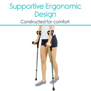 Sleek and stylish, the euro design forearm crutches by offer stabilizing support and greater mobility when recovering from an injury or surgery or managing a long term disability. Ergonomically designed arm cuffs and hand grips provide a comfortable experience throughout the day. Lightweight and durable, the corrosion-resistant aluminum frames are also height adjustable for a customized fit.